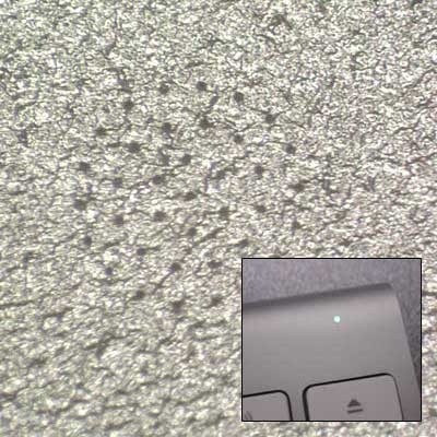 Kleine Löcher im Aluminium sind es die es ermöglichen dass das LED-grün erscheint. Das Foto in groß gibts bei