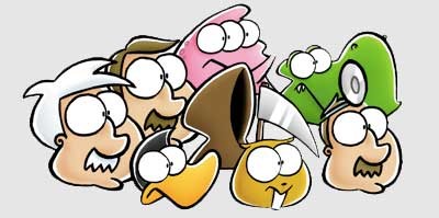 einige vertraute Charaktere wie Lemminge, den Arzt, den Tod, Aliens, Dinos, Yetis, ...