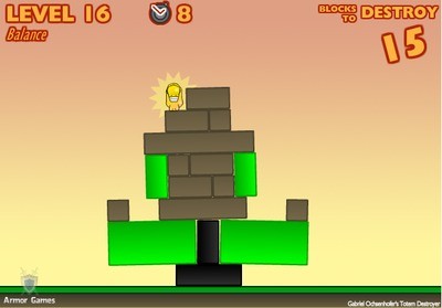 Das zeitraubende kostenlose Onlinespiel Totem Destroyer fordert auf mit Hilfe von drei unterschiedliche Arten von Klötzen einen zerbrechlichen Gegenstand unbeschadet nach unten zu befördern.