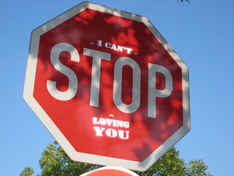 Nach dem I'm sorry Stein nun zwei STOP-Schilder. Oben zu sehen "I can't STOP loving you", ein weiteres gibt es mit "STOP In the name of L♥ve".