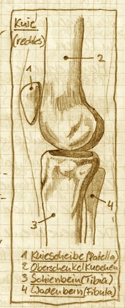 Derzeit arbeite ich mich durch die halbe Medizin; auf dem Weg dabei fällt natürlich das ein oder andere Detail (wie diese Skizze von den Knochen im Knie) ab.