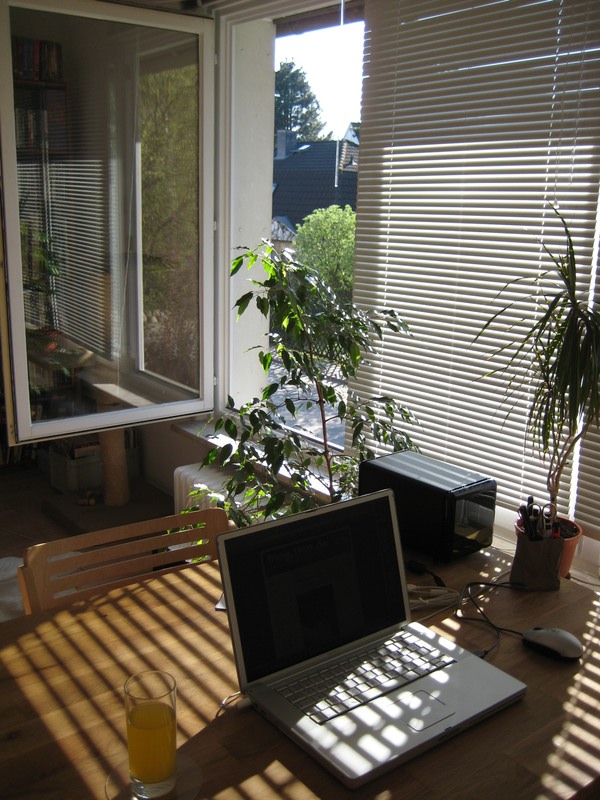 Immer wieder Sonne und der Holztisch mit dem PowerBook. Egal wo, das wirkt immer gemütlich!