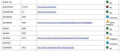 Eine Liste mit den Status der Kompatibilität von Programmen mit Mac OS X.6 Snow Leopard findet man bei