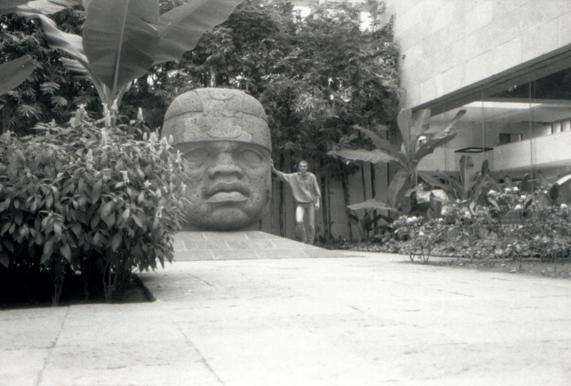 Der Kopf oben befindet sich im Anthropologischen Museum in Xalapa, nördlich von Vera Cruz.