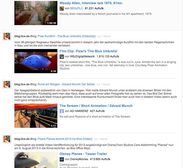 Wer die Videos die hier im Laufe der Zeit gepostet wurden im Überblick sucht wird bei YouTube fündig: