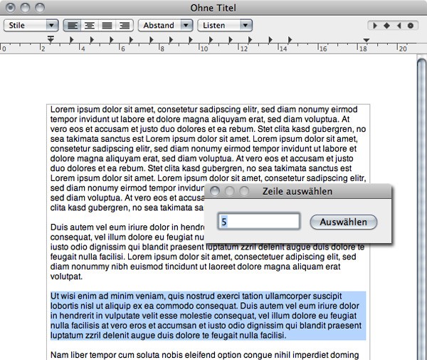 Wer in einem mit TextEdit geöffneten Dokument zu einer bestimmten Zeile springen will braucht dazu nur